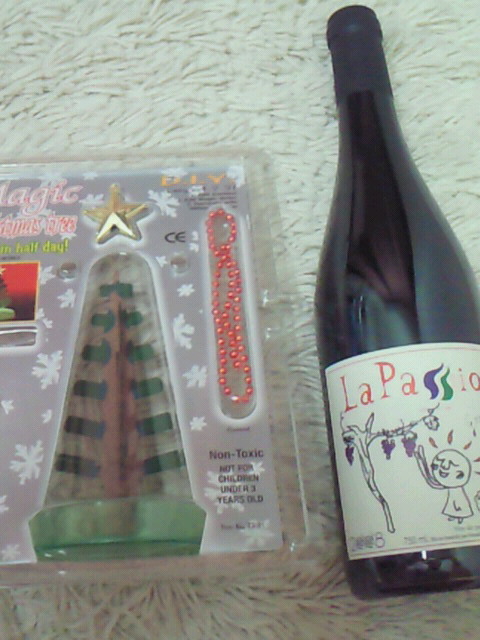 芽がでるクリスマスツリーと ワイン