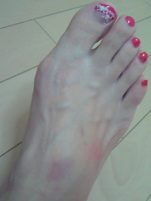 意外に ヒールでやると ままならないものなのね… 今日の足の甲は 少し青くなる程度ですみました