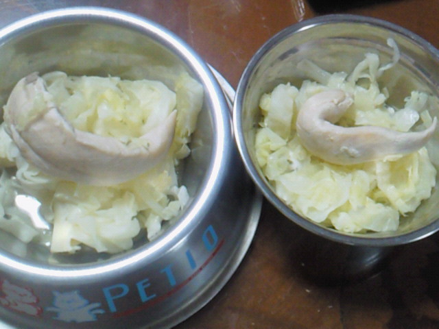 犬は 茹でささ身&キャベツ