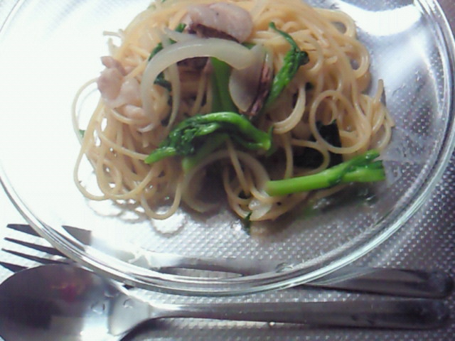 菜の花とポルチーニ&豚肉のオイルパスタ