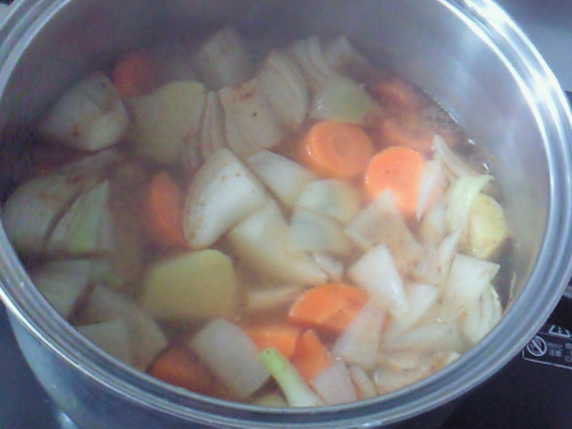 顆粒のだしが最近使えない(>_<) そして いきなりCURRYが たべたくなり かやのだし入りで 下準備しています CURRYは 一日前の夜に ぐざいを沸騰させて 朝にさめた下準備したものに もう一度火を入れてから ルーを入れると 煮込まなくても めっちゃ美味しいのだ('∀'●) 夜中で お腹減ったなぁ(>_<) 寝て忘れるしかないわ(;_;)